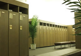 ロッカーキーは暗証番号式でセキュリティーもばっちり。高級感溢れるロッカールームです。 女性用ロッカールームにはパウダールームもございます。