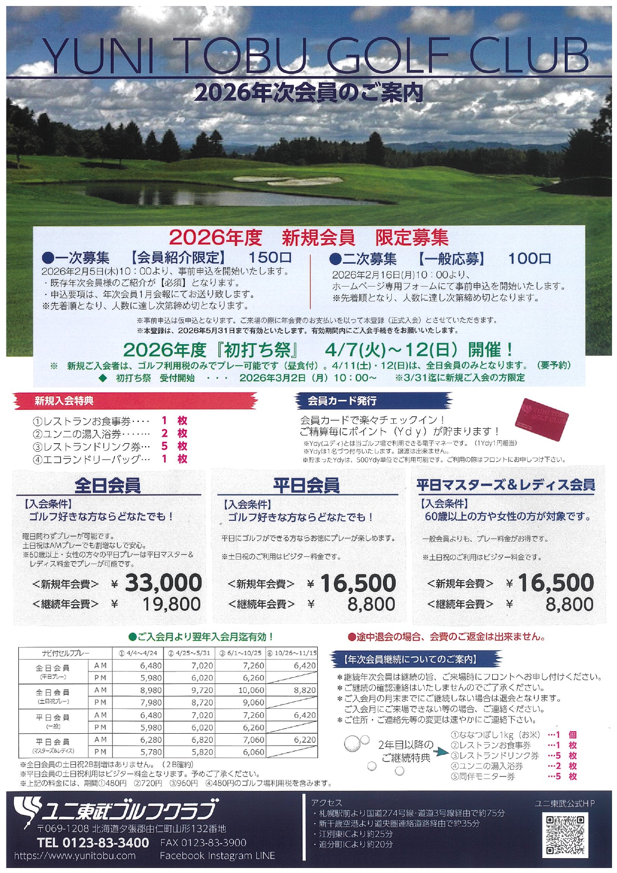 上記チラシのとおり ※年会費は来場時にフロントまでお持ち下さい。 |
